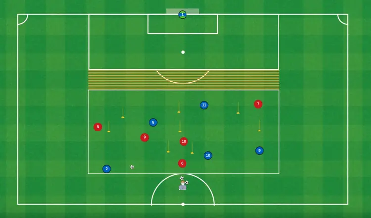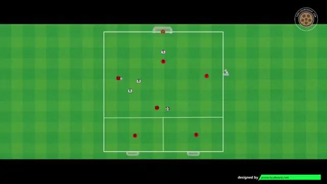 descripción objetivo ejercicio: Acciones de salida de balón con oposición.Situaciones libres, condicionadas por los espacios marcados